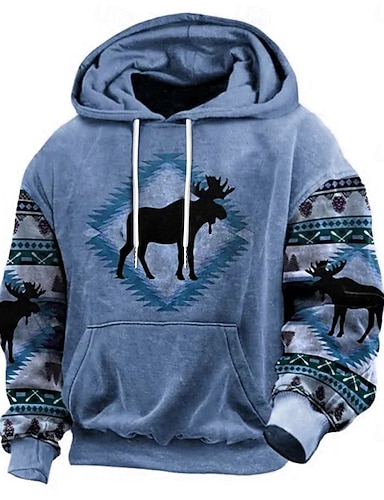 Муж. Ковбой Олень Толстовка Длинный рукав Толстовки Капюшон Винтаж западный стиль Отпуск Уличная одежда Наступила зима Черный Коричневый Зеленый Одежда Дизайнер Графический принт S M L XL XXL XXXL