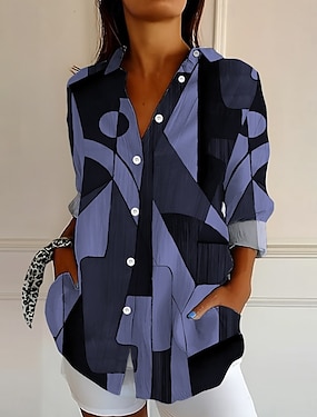 Жен. Толстовки С принтом Графика Геометрический принт Мода На каждый день Длинный рукав Вырез под горло Обычные топы Повседневные Синий Белый Красный Лиловый Зеленый Лето Весна Осень