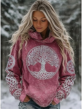 Жен. Pullover Худи Кулиска Карман С принтом Графика Винтаж Уличный стиль На каждый день Длинный рукав Капюшон Обычные топы Повседневные На каждый день Спорт Зеленый Весна Осень