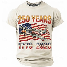 4 июля 2026 г., 250-летие Муж. Сплошной цвет Американский флаг США Футболка С короткими рукавами Футболка 3D печать Вырез под горло Рубашка Винтаж Ретро Патриот Повседневные фестиваль