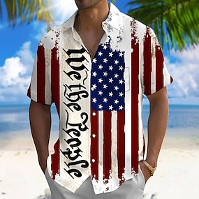 День независимости Муж. Американский флаг США 4 июля — 250-летие США Патриот Рубашка Летняя рубашка Кнопка рубашка С короткими рукавами Мода Повседневная Праздники Лето Весна Отложной 3D
