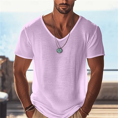 Муж. Футболка Футболка из льна Длинный рукав V-образный вырез Лето Весна Весна лето Сплошной цвет Полотняное плетение Текстура Повседневные На каждый день Уличный стиль Гладкая ткань