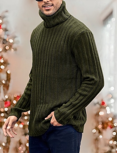 Муж. Рождественский джемпер Рождественские свитера Свитер с высоким воротом Вязаная ткань Праздничный свитер Кабель коренастый Вязать Трикотаж Сплошной цвет Хомут Стиль Классический