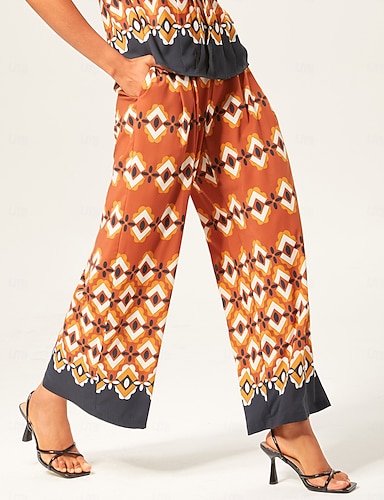 Жен. Нахальный Широкие Брюки Отпуск Классический Классика По щиколотку Нормальная Эластичная талия Стильные Эластичный пояс Эластичная Офис Официальные На каждый день Mink Лето Весна Осень