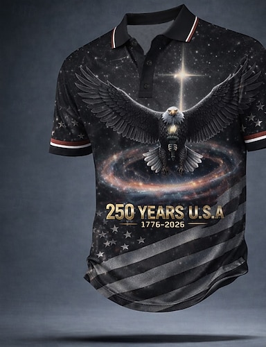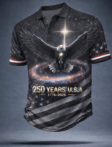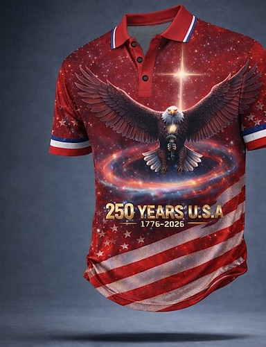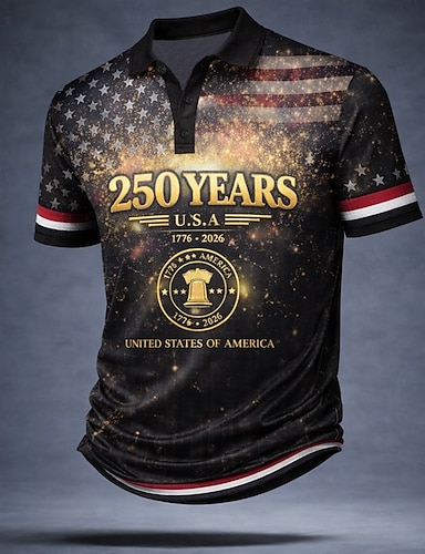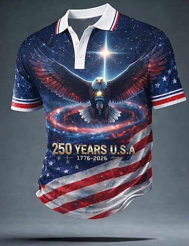 4 июля 2026 г., 250-летие Муж. Американский флаг США Рубашки поло С короткими рукавами Футболки поло Рубашки с воротником На каждый день Одежда для спорта и отдыха Пуговицы Весна лето Синий