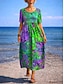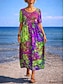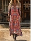 Жен. Длинное платье Платье в стиле бохо Повседневное платье Платье A-силуэта Платье с принтом Винтаж на открытом воздухе Отпуск выходные Стандартный Цветочный принт Графика С короткими рукавами