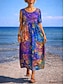 Жен. Платье до колена Платье в стиле бохо Повседневное платье Платье с принтом Элегантный стиль Мода Современное на открытом воздухе Отпуск На выход Стандартный Цветочный принт Абстракция