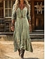 Жен. Рубашка Бохо Рубашка Блуза Полотняное плетение Стиль Классика Современное Рукав до локтя V-образный вырез Обычные топы Повседневные Праздники На выход Военно-зеленный Лето Весна