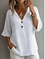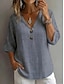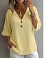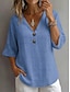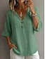 Жен. Блуза Рубашка из искусственного льна Пуговицы Сплошной цвет Винтаж Стиль На каждый день Рукав 3/4 V-образный вырез Обычные топы Повседневные Белый Желтый Военно-зеленный Светло-серый Светло-синий