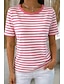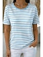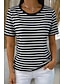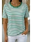 Жен. Футболка С принтом Полоски Графика Полоски Стиль Классика На каждый день С короткими рукавами Вырез под горло Обычные топы Повседневные Синий Черный Розовый Зеленый Хаки Лето Весна