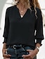 Жен. Рубашка Футболка Стиль Классика Рукав 3/4 V-образный вырез Обычные топы Повседневные На выход Черный Белый Зеленый Весна Осень