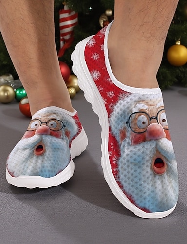 Мужские рождественские кеды с принтом Санта-Клауса, легкая дышащая повседневная обувь для праздничных вечеринок, праздничных нарядов и зимних подарков