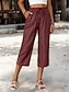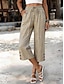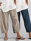 Жен. Штаны Летние штаны Мешковатые брюки Укороченные брюки Отпуск Мода Классический До щиколотки Завышенная Полотняное плетение Кулиска Карман Эластичный пояс Комфорт Мягкий Удобный Неэластичная