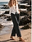 Жен. Широкие Льняные брюки Штаны Чино Отпуск Мода Классический Полная длина Нормальная Полотняное плетение Кулиска Плиссировка Карман Комфорт Легкость Дышащий Неэластичная