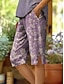 Жен. Шорты из хлопка и льна Отпуск Винтаж прибрежный стиль бабушки Полная длина Нормальная Цветочный принт Графика С принтом Комфорт Слабоэластичная Повседневные Для улицы Фиолетовый Лето Весна