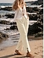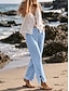 Жен. Широкие Отпуск Классический Полная длина Нормальная Полотняное плетение Комфорт Неэластичная Повседневные Белый Желтый Темно-синий Лето Весна Свободное облегание