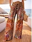 Жен. Широкие Чино Брюки Отпуск Мода Классический Полная длина Нормальная Огурцы Карман Эластичная талия С принтом удобный Воздухопроницаемость Дышащий Неэластичная