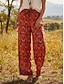 Жен. Искусственный хлопок и лен Широкие Повседневные брюки Брюки Отпуск Мода Уличный стиль По щиколотку Нормальная Цветочный принт Графика Кулиска Пэчворк Карман удобный Комфорт Воздухопроницаемость