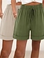 Комплект из 2 женских шорт, летние шорты, 100% хлопок, пляжные брюки, для отдыха, повседневные, длиной до колена, натурального цвета, однотонные, на шнурке, с карманом, эластичным поясом,