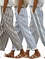 Жен. Искусственный хлопок и лен Широкие Повседневные брюки Брюки Отпуск Мода Уличный стиль По щиколотку Нормальная Графика Полоски Карман Эластичная талия С принтом