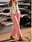 Жен. Широкие Отпуск Классический Полная длина Завышенная Полотняное плетение Комфорт Эластичность Повседневные Синий Розовый Темно синий Светло-серый Лето Весна Осень Зима Свободное облегание