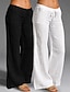 Комплект из 2 женских хлопковых льняных брюк чинос с широкими штанинами для отдыха, повседневной носки, на каждый день, полной длины, с высокой талией, однотонные, на шнурке, удобные, быстросохнущие,