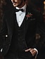 Мужской Рождество Повседневные Костюмы для вечеринок Воротник шалевого типа Черный Рождество Повседневные Однотонный Узкий крой Набор из 3 предметов Однобортный с 1 пуговицей