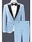 Мужской Рождество Для вечеринок Бархатный костюм Лацкан с острым углом Небесно-голубой Мода Для вечеринки Однотонный Узкий крой Набор из 2 предметов Однобортный с 2 пуговицами
