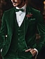 Мужской Рождество Для вечеринок Бархатный костюм Лацкан с острым углом Черный Зеленый Рождество Для вечеринки Однотонный Узкий крой Набор из 3 предметов Однобортный с 2 пуговицами
