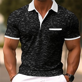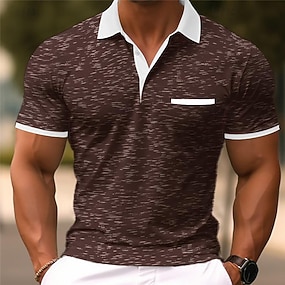 Муж. Спортивное поло Футболка-поло Повседневные Праздники Лацкан С короткими рукавами Мода Классический Контрастных цветов кнопка Карман Лето Стандартный Винный Белый Черно-белый Серый Спортивное поло