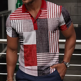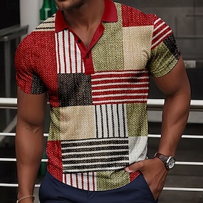 Муж. Костюм Штаны Костюм Брюки Узкие брюки с карманами Геометрический принт Контрастных цветов Полная длина на открытом воздухе Повседневные Красный Синий Слабоэластичная