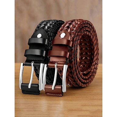 Мужской плетеный ремень из натуральной кожи — классический плетеный дизайн с полированной пряжкой, прочный и регулируемый аксессуар для талии, подходящий для повседневных, деловых и гольф-нарядов.
