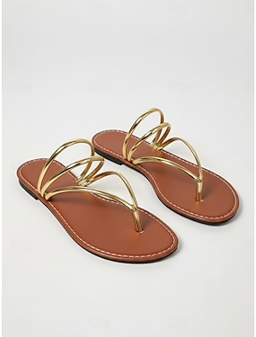 Элегантные женские золотистые сандалии-вьетнамки — минималистичные металлические ремешковые плоские шлепанцы для пляжного отдыха и летних курортов. &отдых у бассейна