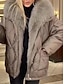 Жен. Зимнее пальто Искусственное меховое пальто Куртка с капюшоном Сохраняет тепло Удобный Молния Карман Пуговицы Меховой воротник На каждый день Полотняное плетение