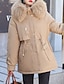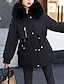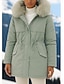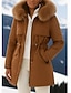 Жен. Парка Удобный Дышащий Карман Пуговицы Меховой воротник На каждый день Полотняное плетение Отпуск Для улицы Повседневные На каждый день Молния Обычная Капюшон Стандартный Длинный рукав