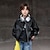 Детские Мальчики Черная кожаная куртка Жакет Верхняя одежда Полотняное плетение Длинный рукав Застегнуться ЗАЩИТА ОТ ВЛАГИ Защита от ветра Пальто Повседневные Мода На каждый день Черный Весна Осень 4