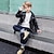 Детские Мальчики Черная кожаная куртка Жакет Верхняя одежда Числа Длинный рукав Застегнуться ЗАЩИТА ОТ ВЛАГИ Защита от ветра Пальто Повседневные Мода На каждый день Черный Весна Осень 4-12 лет