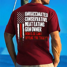 Муж. Графические принты печать букв Флаги Футболка Графический Тис 100% хлопок Короткие рукава Графика Рубашка Винный Черный Красный Удобная футболка Отпуск Для улицы Модельер одежды