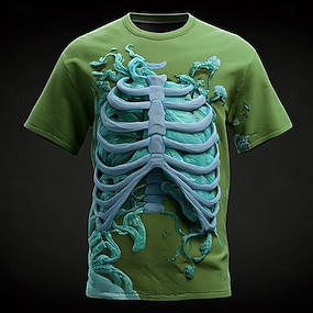 Halloween Муж. 3D-печати 3D Скелет Футболка С короткими рукавами Футболка 3D печать Вырез под горло Рубашка преувеличены Оригинальный рисунок Ужас Для вечеринок Для улицы Повседневные