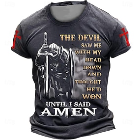 Муж. Графика Вера может свернуть горы Футболка С короткими рукавами Футболка 3D печать Вырез под горло Рубашка Повседневные Ретро Уличный стиль Для спорта и активного отдыха Праздники На выход