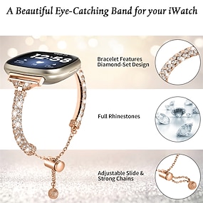 Умный ремешок для часов Совместим с Фитбит Versa 4, Sense 2, Versa 3, Sense Нержавеющая сталь Умные часы Ремень Женский Блеск Хрусталь Ювелирный браслет Замена Браслет