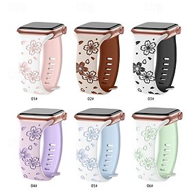 цветок с гравировкой Совместим с Ремешок для часов Apple Watch 38мм 40мм 41мм 42мм 44мм 45мм 49мм Прочный Пряжка-бабочка силиконовый Сменный ремешок для часов для iwatch Ultra 2 Series 9 8 7 SE 6 5 4