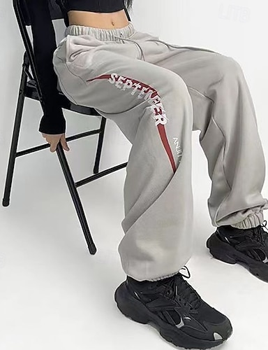 Жен. Спортивные брюки для дома Повседневные прямые брюки Кулиска Завышенная Нижняя часть Одежда для спорта и отдыха Для спортивного зала Тренировка Осень Легкость