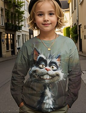 Девочки 3D Животное Кот Футболка Длинный рукав 3D печать Осень Зима Активный Спорт Мода Дети 3-12 лет на открытом воздухе Повседневные Стандартный