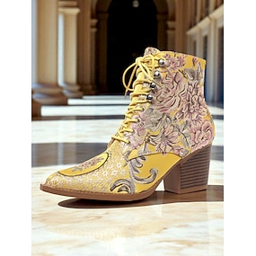 женские желтые жаккардовые ботильоны на шнуровке с толстым каблуком - короткие женские ботинки в викторианском стиле конца XIX века в стиле барокко, идеально подходят для осенних нарядов,