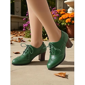 Женские зеленые туфли-оксфорды из искусственной кожи – винтажные броги 1950-х годов на массивном каблуке со шнуровкой для работы, осенней моды и рождественских нарядов