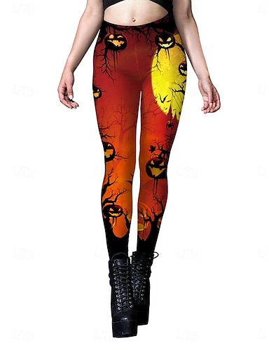 Жен. Леггинсы Панк Уличный стиль Полная длина ЗавышеннаяPantsHalloween Тыква С принтом Воздухопроницаемость Мягкий Удобный Эластичность Отпуск Для вечеринок Черный Белый Желтый Оранжевый Осень Зима