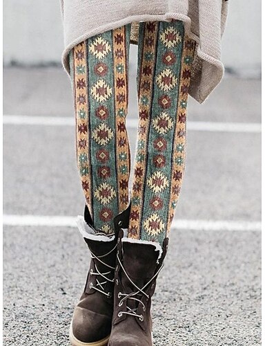 Жен. Брюки Леггинсы Уютные леггинсы Отпуск Винтаж Полная длина Завышенная Геометрический принт Контрастных цветов Эластичная талия С принтом Воздухопроницаемость Удобный Эластичная Отпуск Для улицы