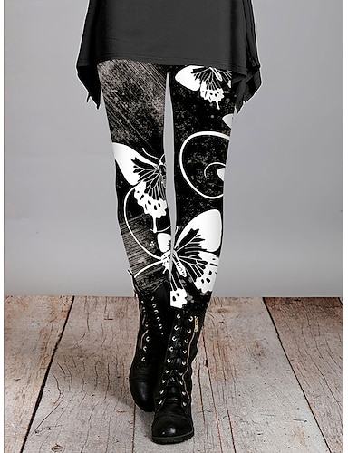 Жен. Леггинсы Отпуск Винтаж Мода По щиколотку Завышенная Графика Бабочка Рисунок Мягкий Дышащий Эластичность на открытом воздухе Повседневные Черный Весна Осень Зима Приталенный крой