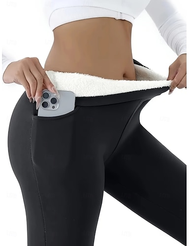 Жен. Чино Леггинсы Уютная флисовая подкладка На каждый день Полная длина Нормальная Полотняное плетение Эластичная талия Сохраняет тепло Удобный Эластичная на открытом воздухе Отпуск Для улицы